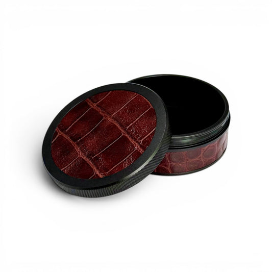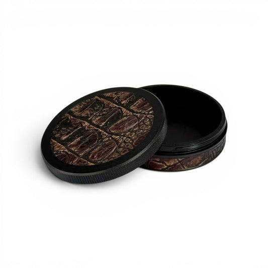 Black on Brown Embossed Croc Leather Ruk Can